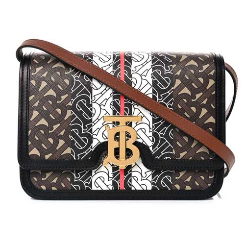 Link to: BURBERRY E-Canvas Monogram Stripe Small TB Bag Bridle Brown