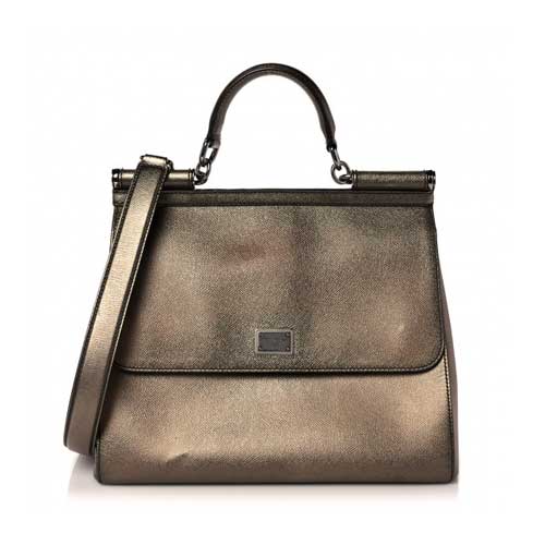 DOLCE GABBANA Metallic Dauphine Large Miss Sicily Satchel Bronze