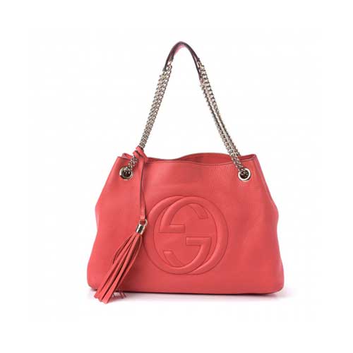 GUCCI Pebbled Calfskin Medium Soho Chain Shoulder Bag Begonia