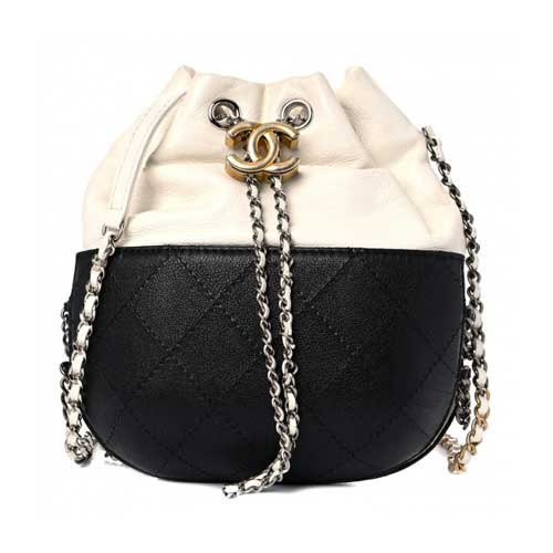 Link to: CHANEL Aged Calfskin Quilted Small Gabrielle Bucket White Black