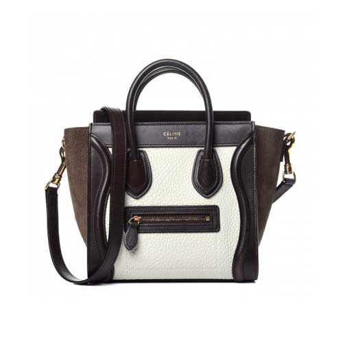 CELINE Bullhide Calfskin Suede Nano Tri-Color Luggage White