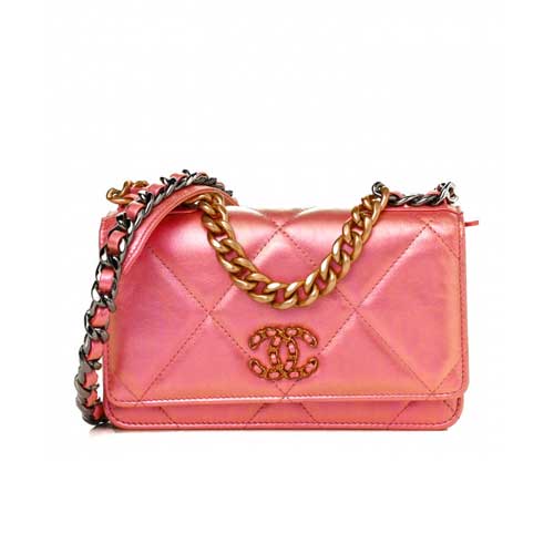 Link to: CHANEL Iridescent Calfskin Quilted Chanel 19 Wallet On Chain WOC Pink