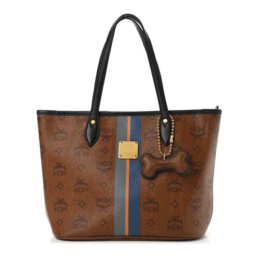 MCM Visetos Dog Bone Striped Shopper Tote Cognac